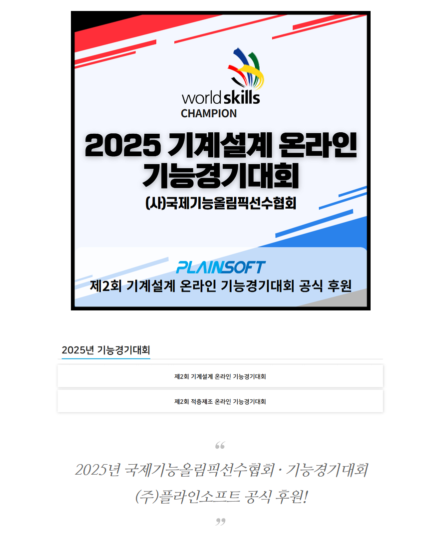 (주)플라인소프트, 2025년 제2회 기계설계 온라인 기능경기대회 · 제2회 적층제조 온라인 기능경기대회 공식 후원