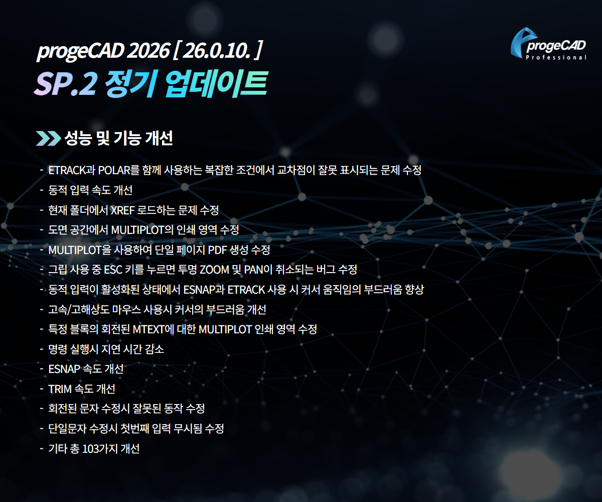 progeCAD 2026 [26.0.10.] SP.2 정기 업데이트 공지입니다.
