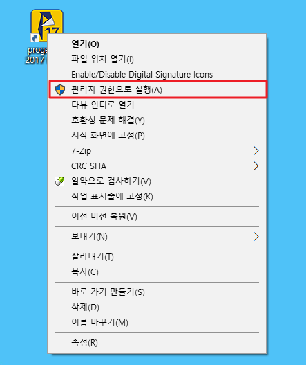 progeCAD를 관리자 권한으로 실행아이콘 오른쪽 클릭 - 호환성 - 관리자 권한으로 이 프로그램을 실행 체크하시면 됩니다.