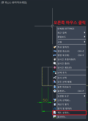 1. 제도 설정(제도 화면 오른쪽 마우스 클릭 또는 명령:SE)