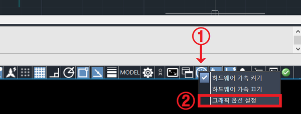 1. 프로그램 우측 하단 아이콘 클릭 → 그래픽 옵션 설정 클릭